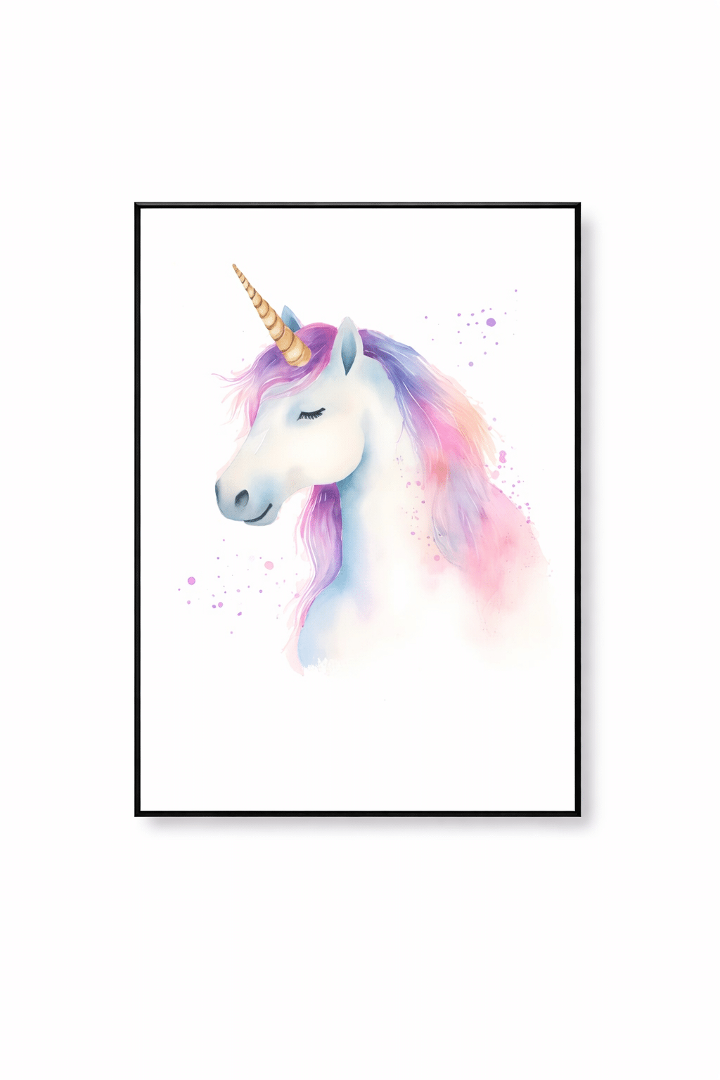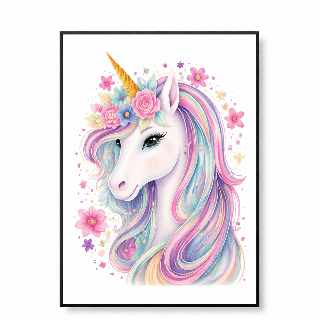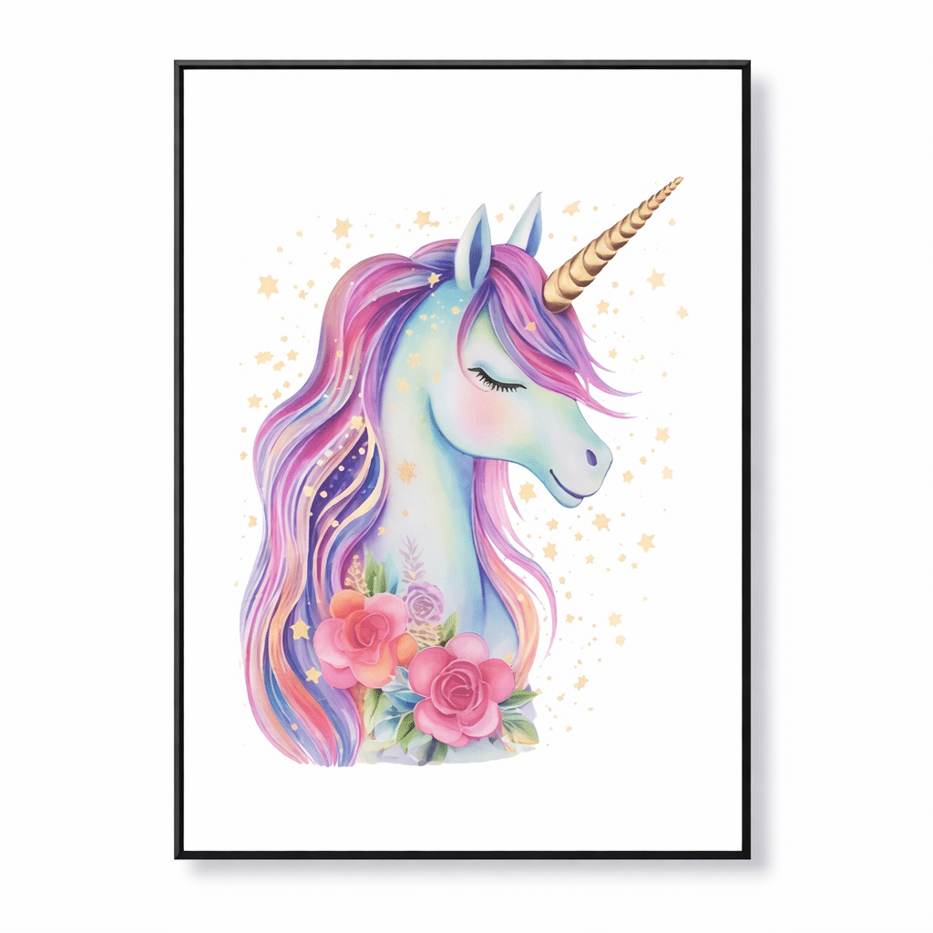 Ce modèle correspond au coloris tête de licorne fleurie, mais la collection propose aussi d’autres versions : tête de licorne colorée, licorne entière ou délicate licorne, pour composer une décoration cohérente et personnalisée en mélangeant plusieurs affiches sur un même mur.