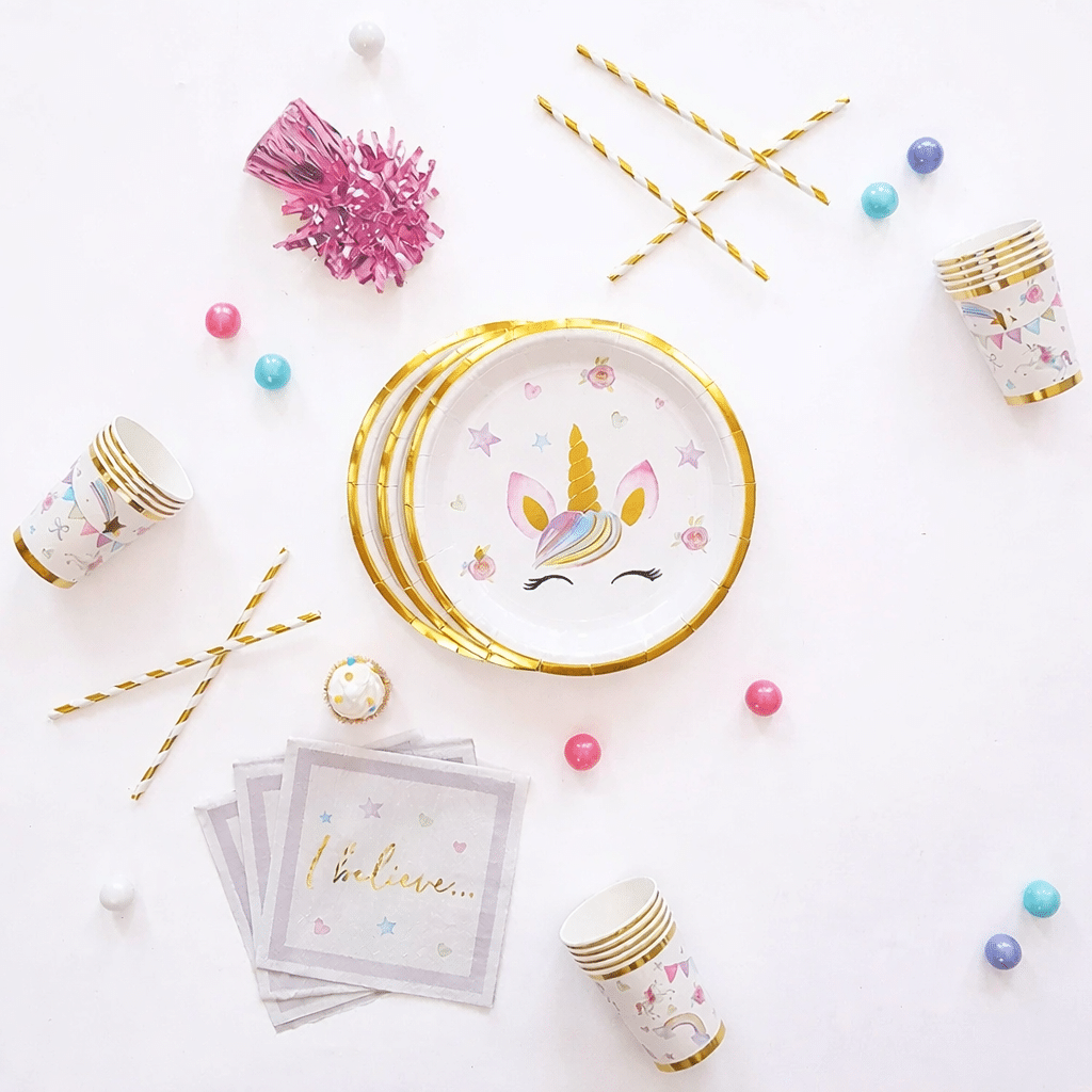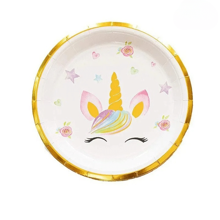 Les motifs sont nets, bien colorés et résistants : les teintes pastel du visage de licorne, le rose des fleurs et l’éclat de la corne dorée restent beaux même une fois les assiettes sorties de leur emballage.