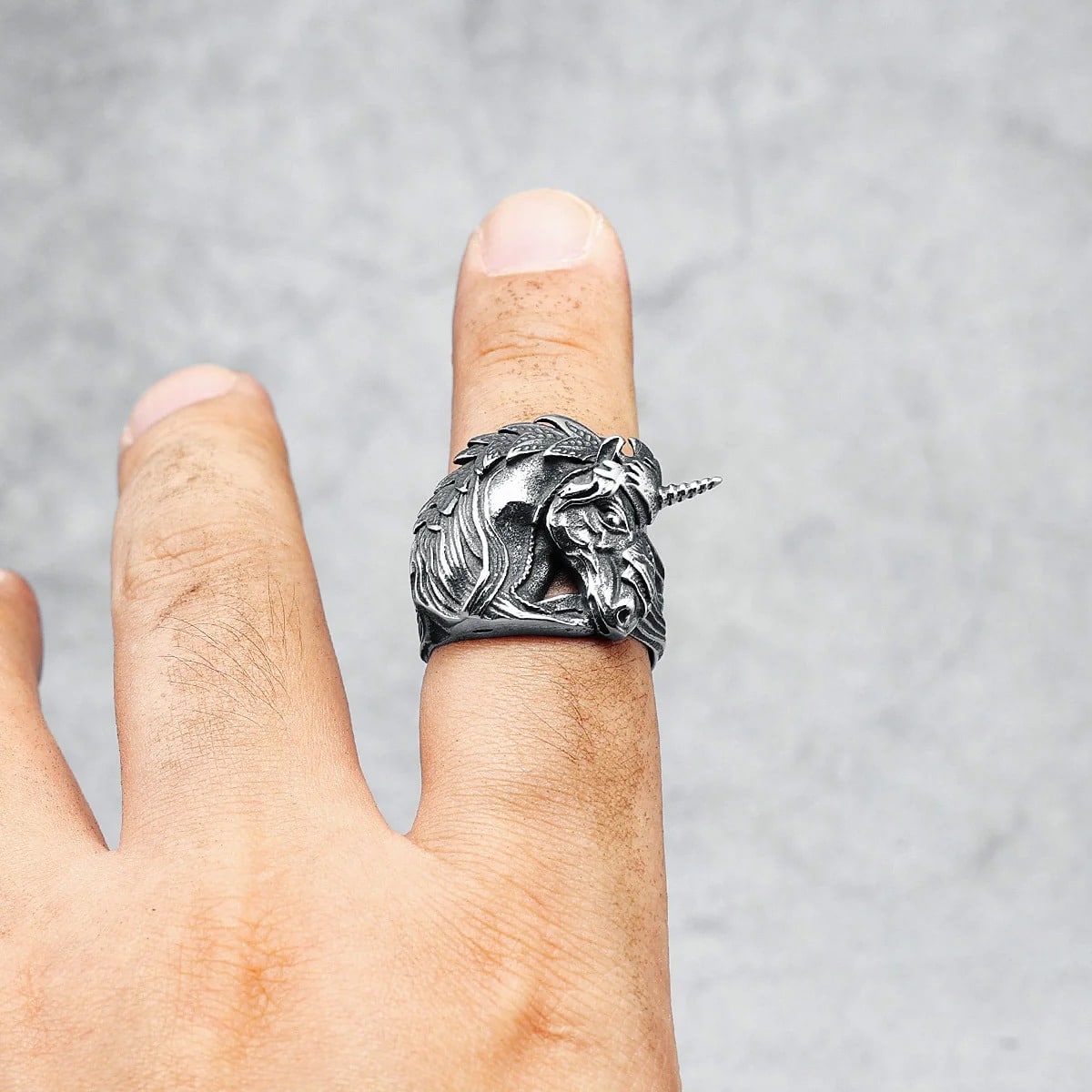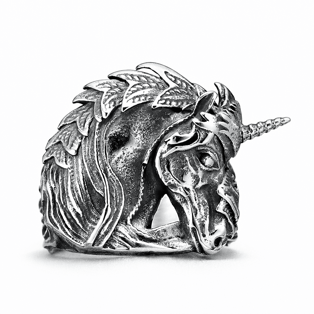 La bague licorne homme chevalière attire le regard avec son design massif et sculpté, taillé pour ceux qui aiment les pièces qui ont du caractère.