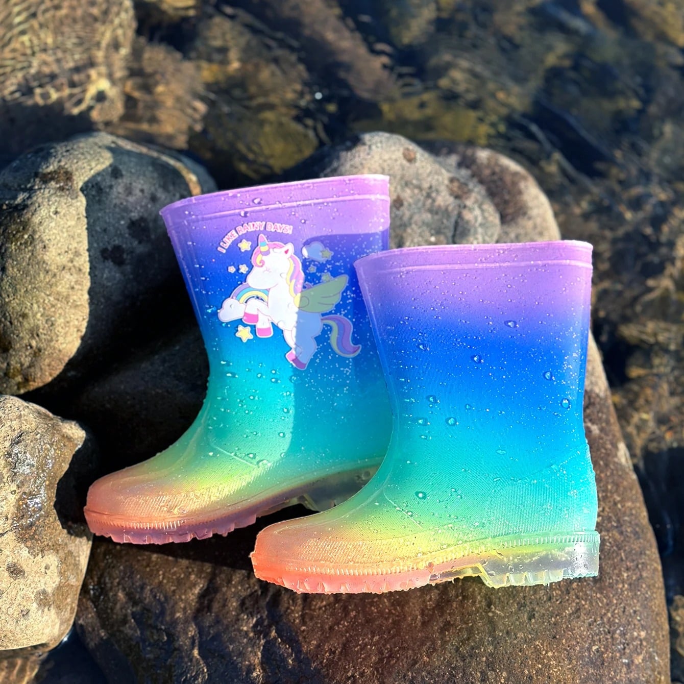 Ces bottes de pluie licorne arc en ciel enfant sont un vrai coup de cœur dès le premier regard.