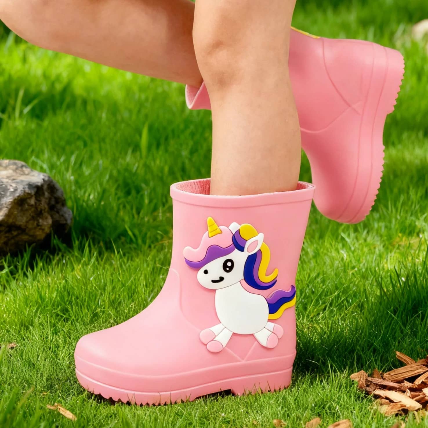 Une botte rose bonbon ornée d’une licorne 3D au galop, pour affronter la pluie avec magie. Imperméable et facile à enfiler, elle transforme chaque flaque en terrain d’aventure enchanté.