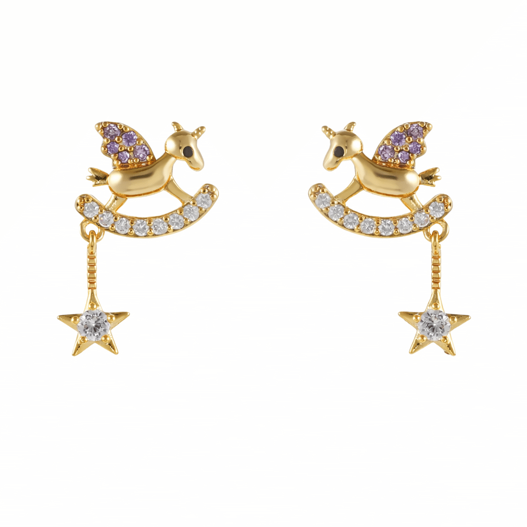 Cette boucle oreille forme licorne doré avec strass attire le regard avec ses détails soignés et son charme féerique.