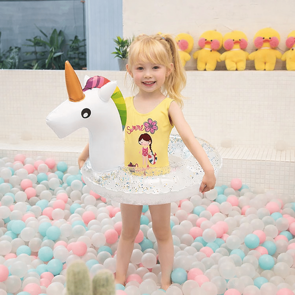 Que ce soit pour les vacances, une journée à la piscine ou une fête d’anniversaire sur le thème des licornes, elle attire tous les regards et donne envie de plonger dans l’eau.