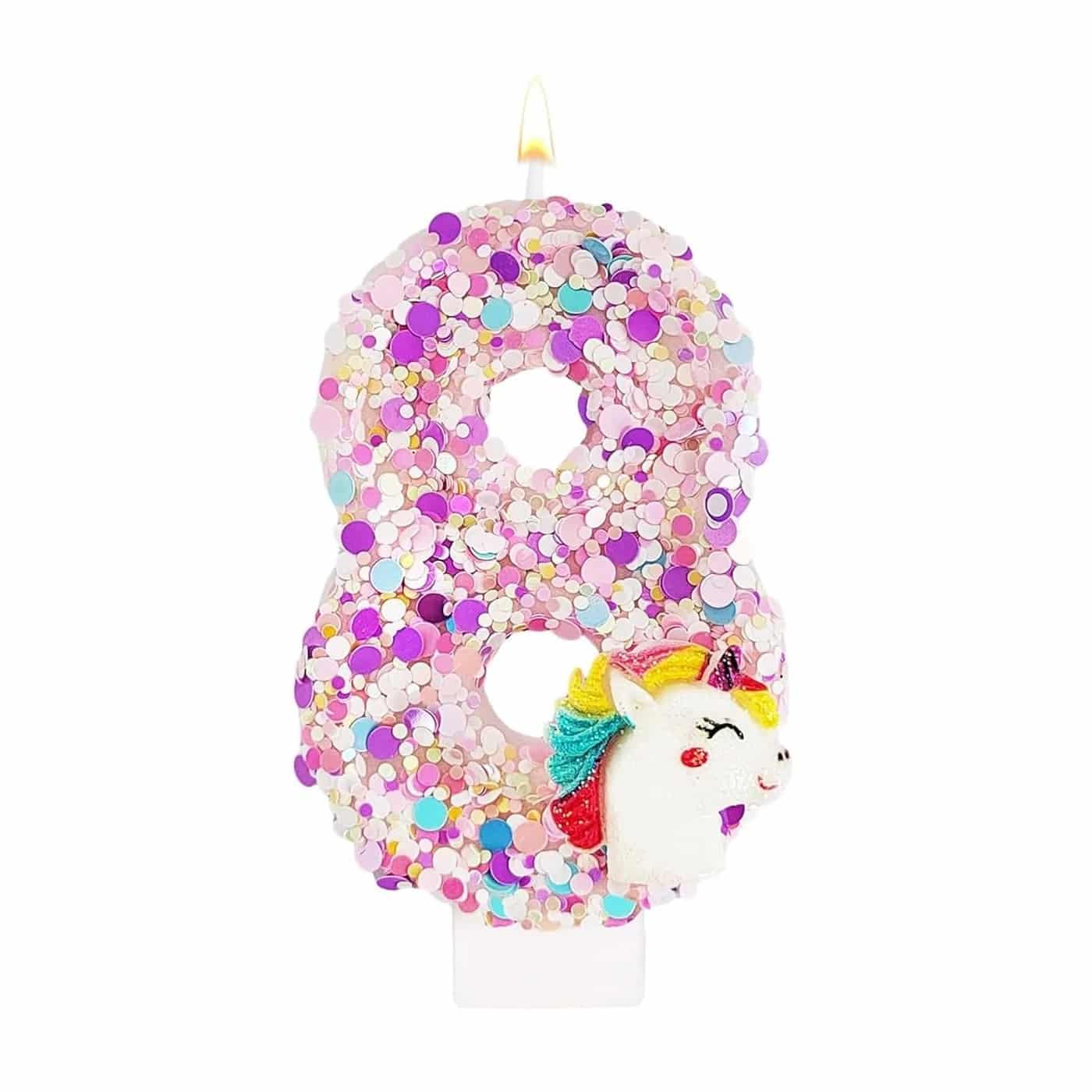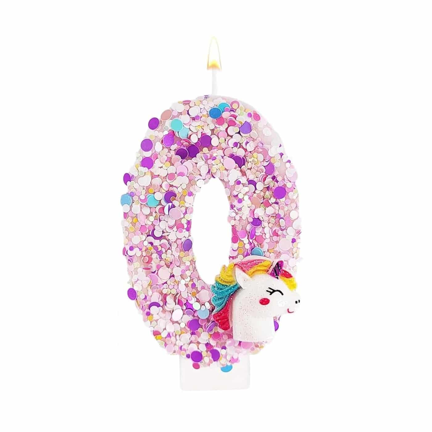 La bougie licorne en forme de chiffre paillette rose est disponible dans tous les chiffres de 0 à 9, ce qui permet de l’adapter à chaque anniversaire, que ce soit pour fêter les 1 an, les 6 ans ou les 30 ans d’un fan de licornes.