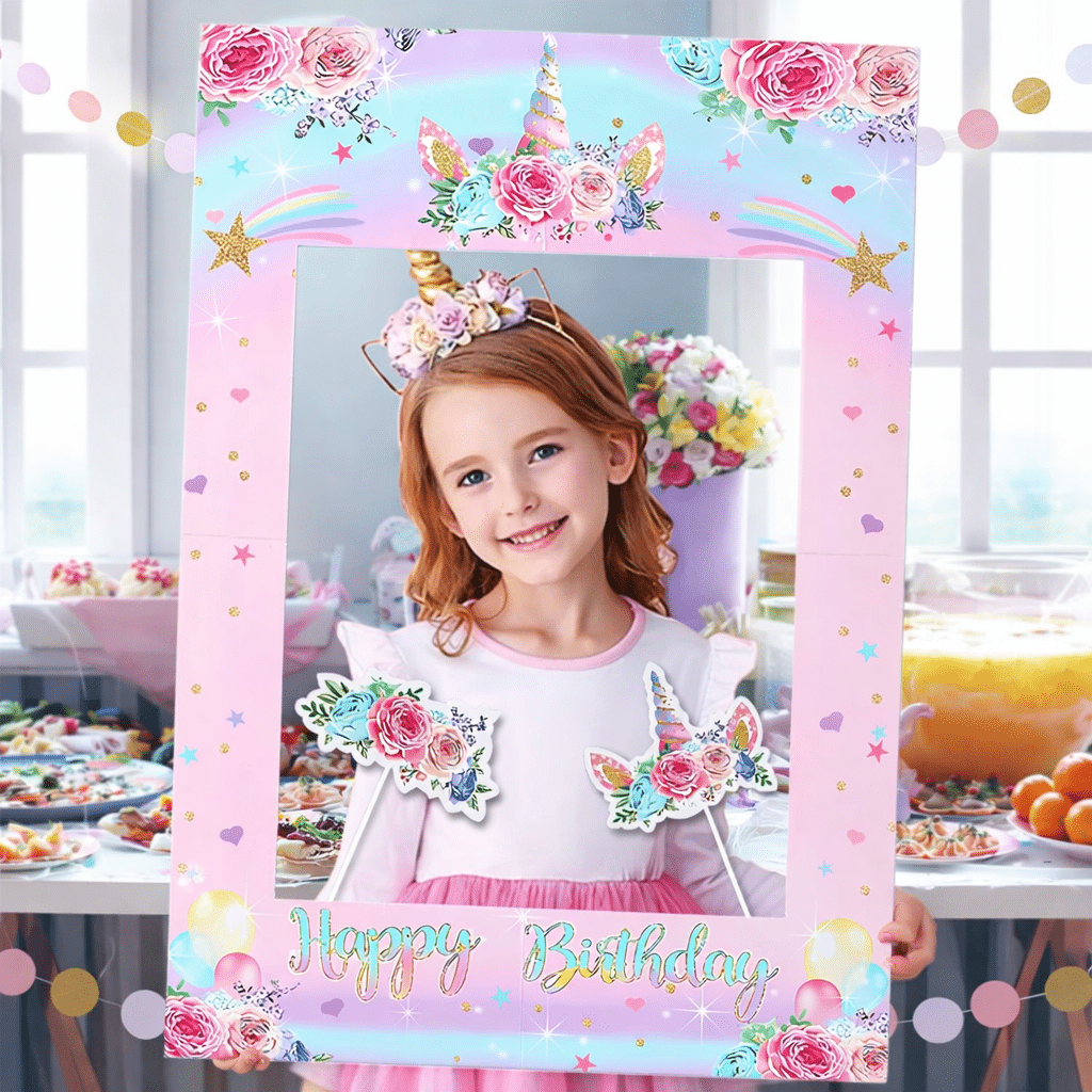Ce cadre selfie licorne ajoute une touche de magie instantanée à n’importe quel décor de fête et donne envie de sortir l’appareil photo à chaque instant.