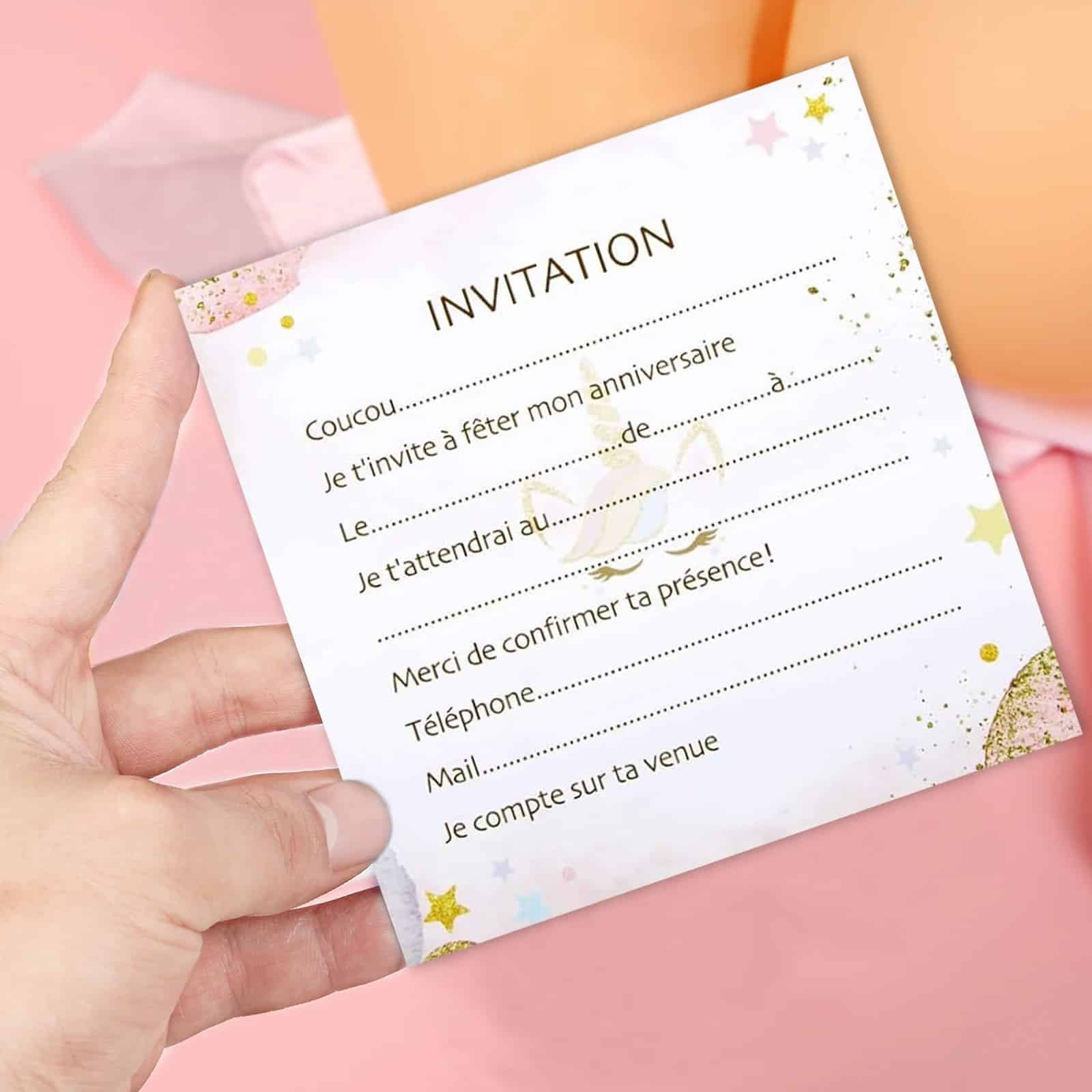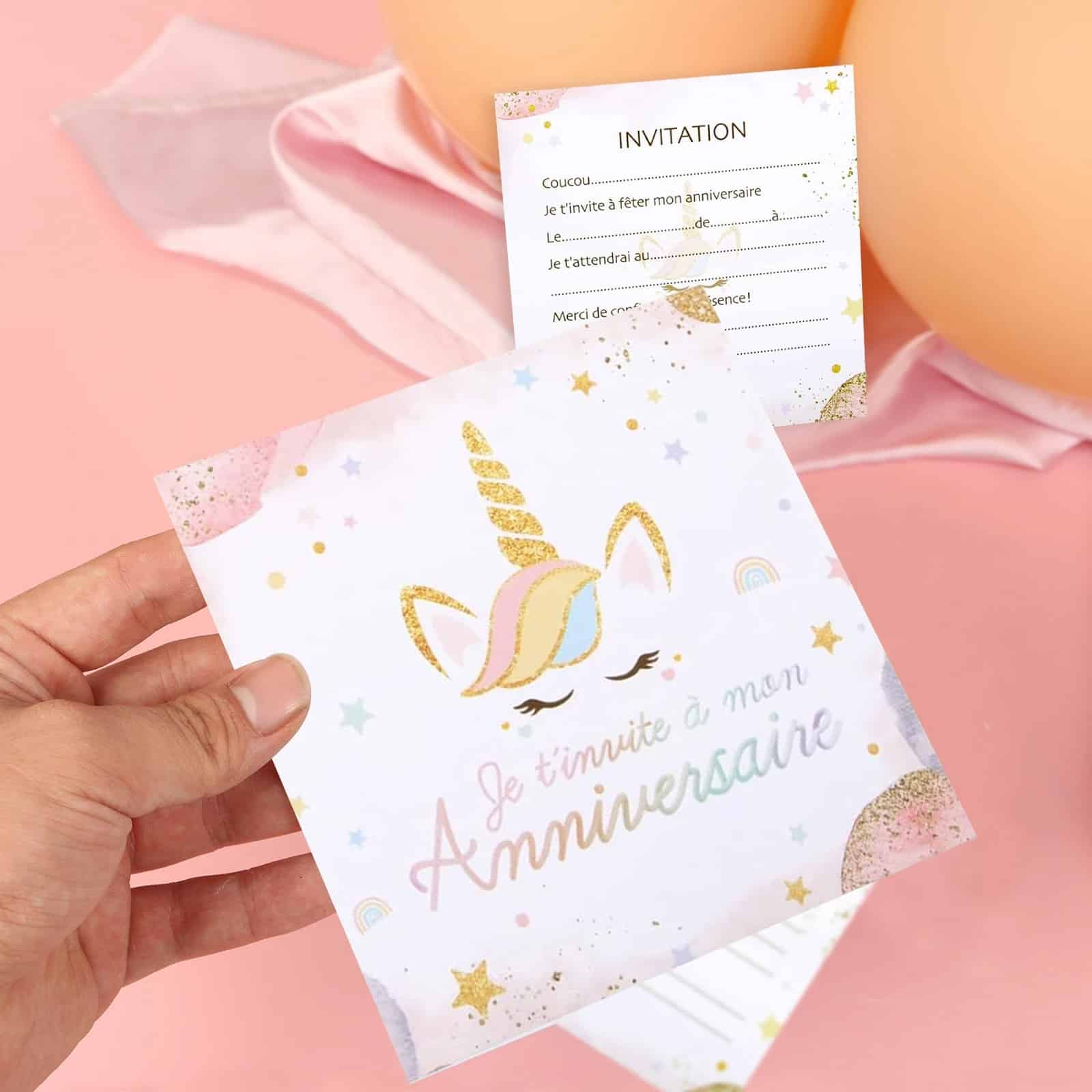 Carte d’invitation anniversaire licorne​ (lot de 12)