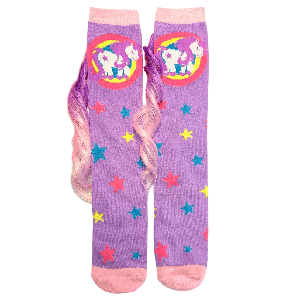 Ces chaussettes licorne crinière en relief ont un petit quelque chose en plus que les autres : une vraie crinière en fils bleus qui dépasse de la chaussette, comme si une licorne avait glissé ses crins à l’intérieur.