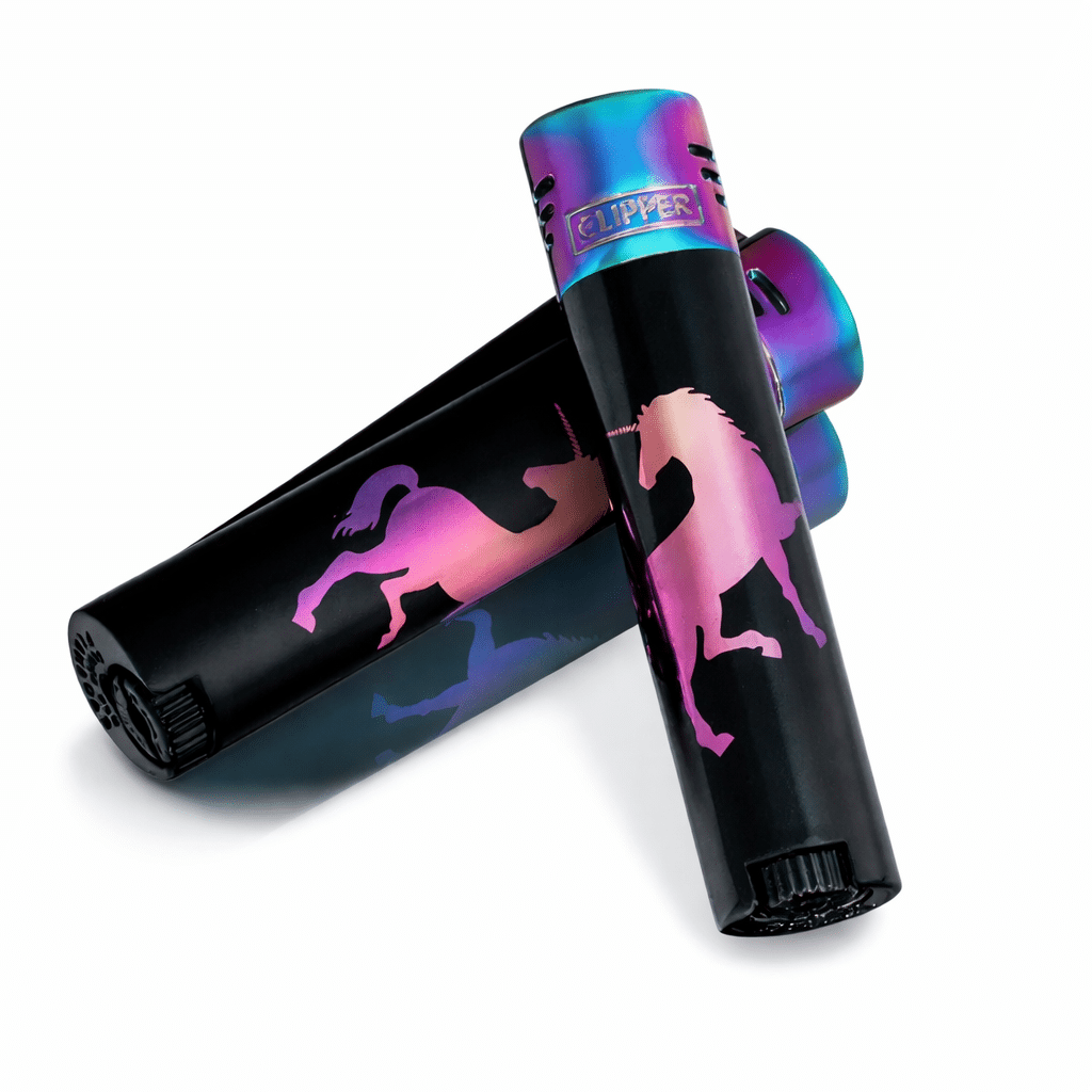 Le haut du briquet est traité dans un camaïeu arc-en-ciel irisé, ce qui donne à l’ensemble un rendu très soigné et cohérent avec l’univers magique des licornes.