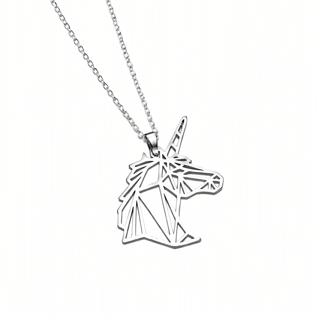 Le collier femme pendentif licorne style origami attire le regard avec son design géométrique vraiment unique.