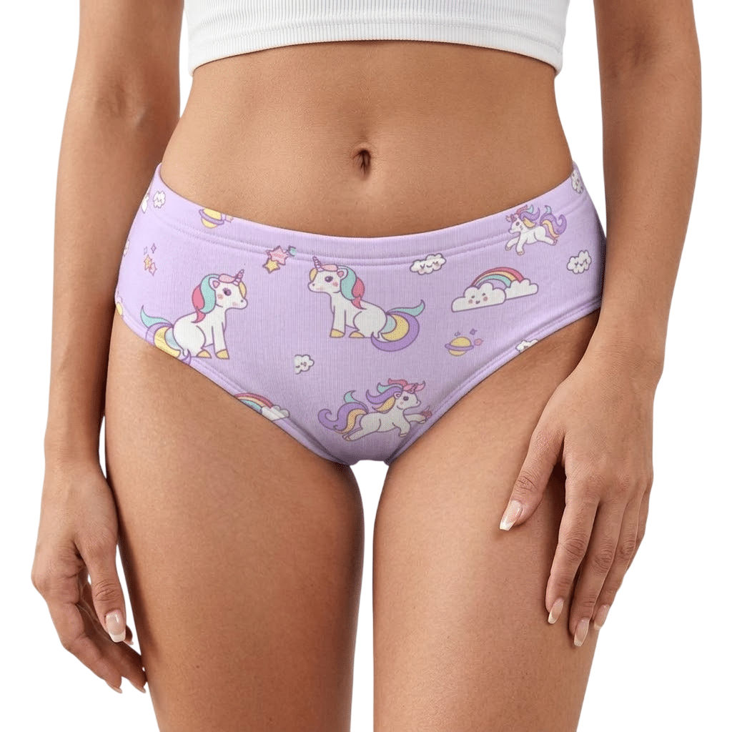 La culotte licorne femme violette apporte une touche de magie jusque dans les détails les plus intimes du quotidien.