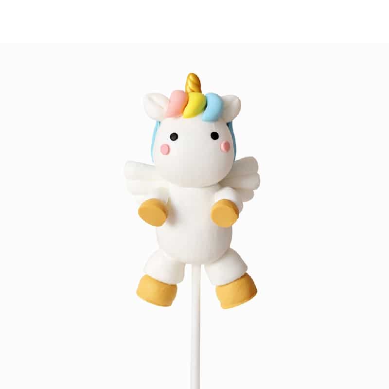 La deco gateau licorne petite figurine est aussi une idée cadeau toute douce à glisser dans un paquet surprise ou à offrir en complément d’un kit de décoration de fête.