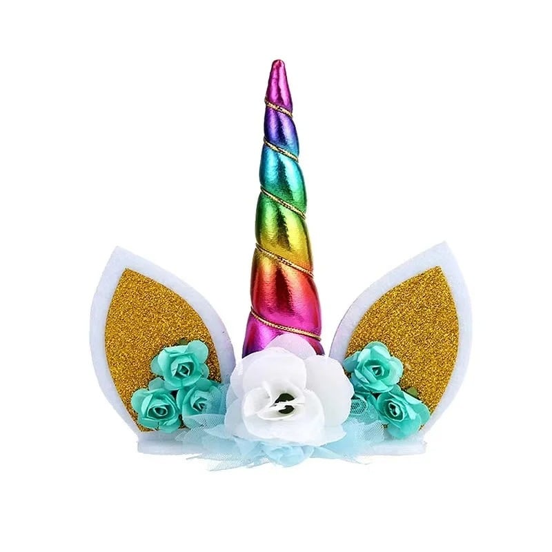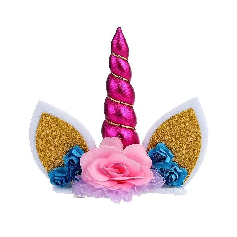 La décoration gâteau tête de licorne se pose directement sur le gâteau grâce à sa base plate, sans installation compliquée.