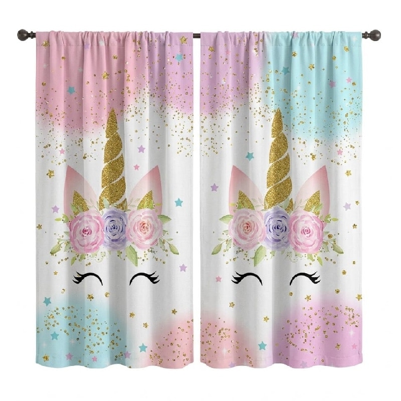 Ce double rideau licorne blanc et rose transforme instantanément une chambre en véritable univers magique.