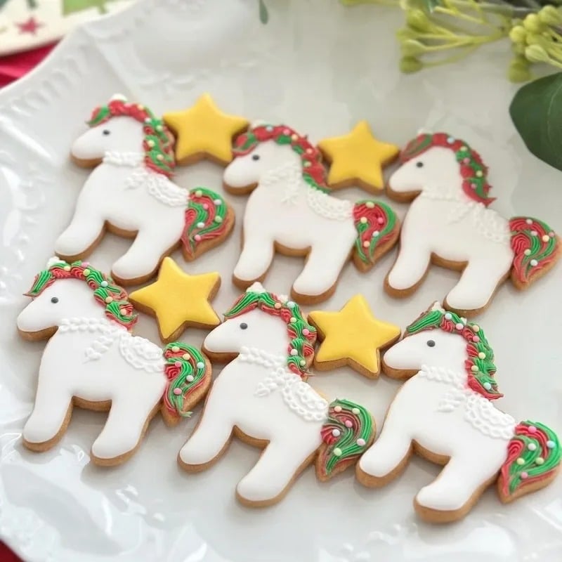 Un biscuit étoile sur bâtonnet et une petite corne de licorne en sucre complètent la mise en scène, pour donner des idées d’assortiments festifs.