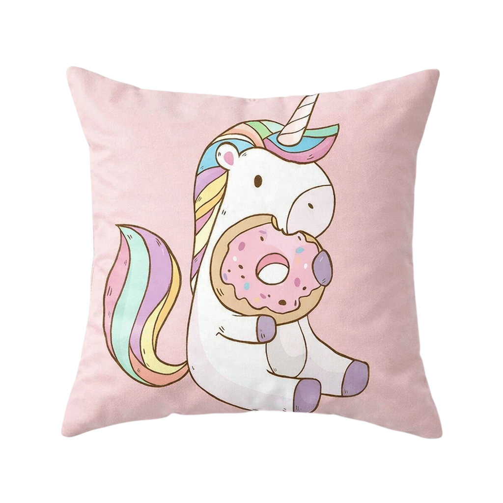 Cette housse de coussin licorne rose donuts va transformer n’importe quel canapé, lit ou chambre en un vrai coin de magie.
