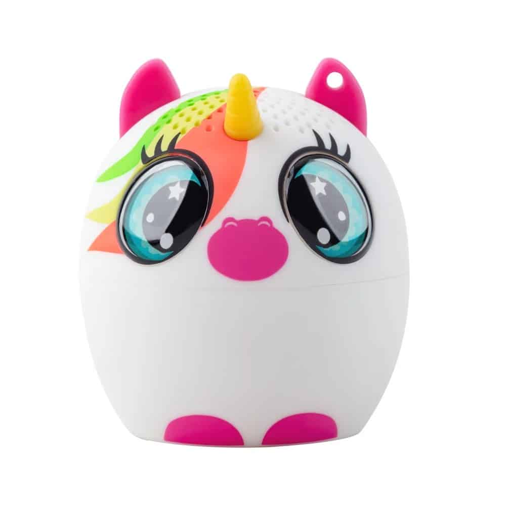 Cette petite enceinte connectée licorne fait craquer au premier regard avec sa forme d’œuf tout rond, sa robe blanche immaculée et ses joues roses toutes rondes.