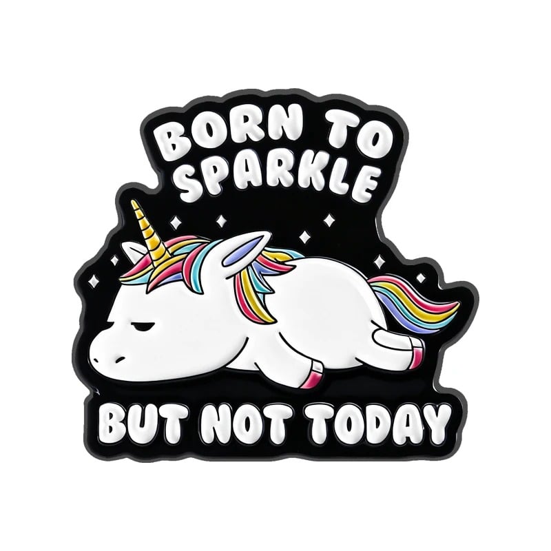 Une licorne paresseuse qui brille à son rythme, même allongée sur fond noir. Ce pin’s métal aux couleurs arc-en-ciel résume avec humour l’état d’esprit d’une génération entière.