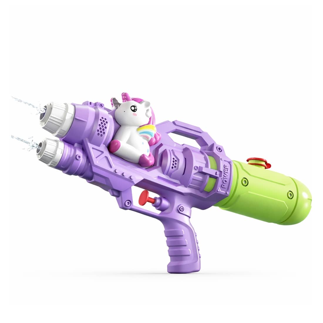 Un pistolet à eau aux couleurs féeriques rose et menthe, couronné d’une adorable licorne ailée. Grand réservoir, double buse et magie assurée pour des batailles d’eau inoubliables cet été.