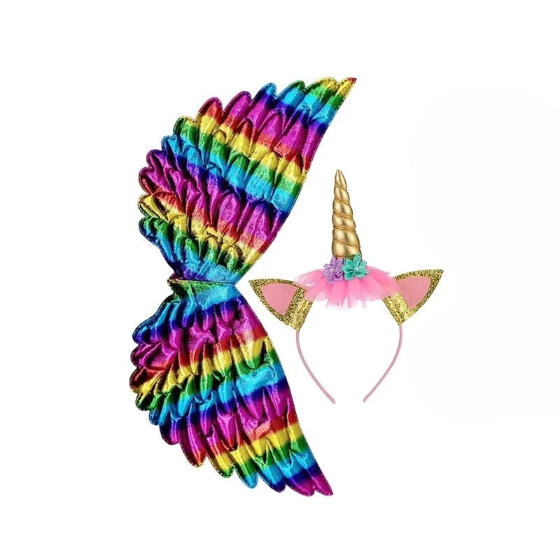 Les ailes en plastique aux plumes arc-en-ciel s’attachent dans le dos et complètent le look avec une touche vraiment spectaculaire.