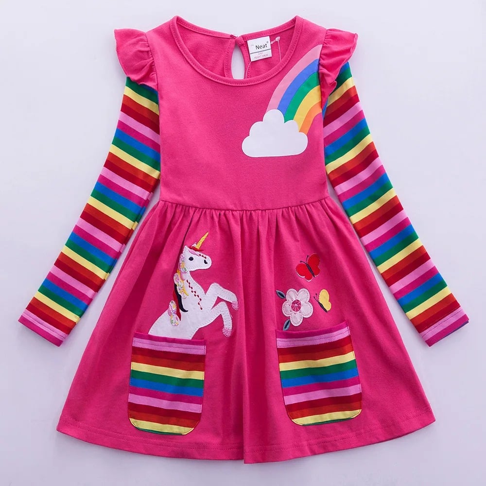 Fabriquée en coton doux, la robe licorne fille manches longues est agréable à porter même sur une journée entière.
