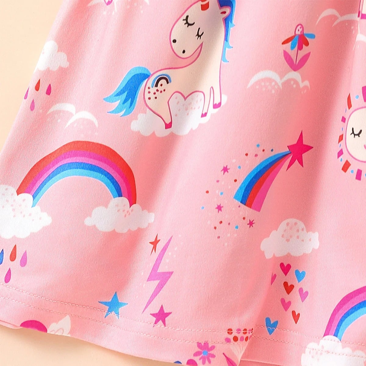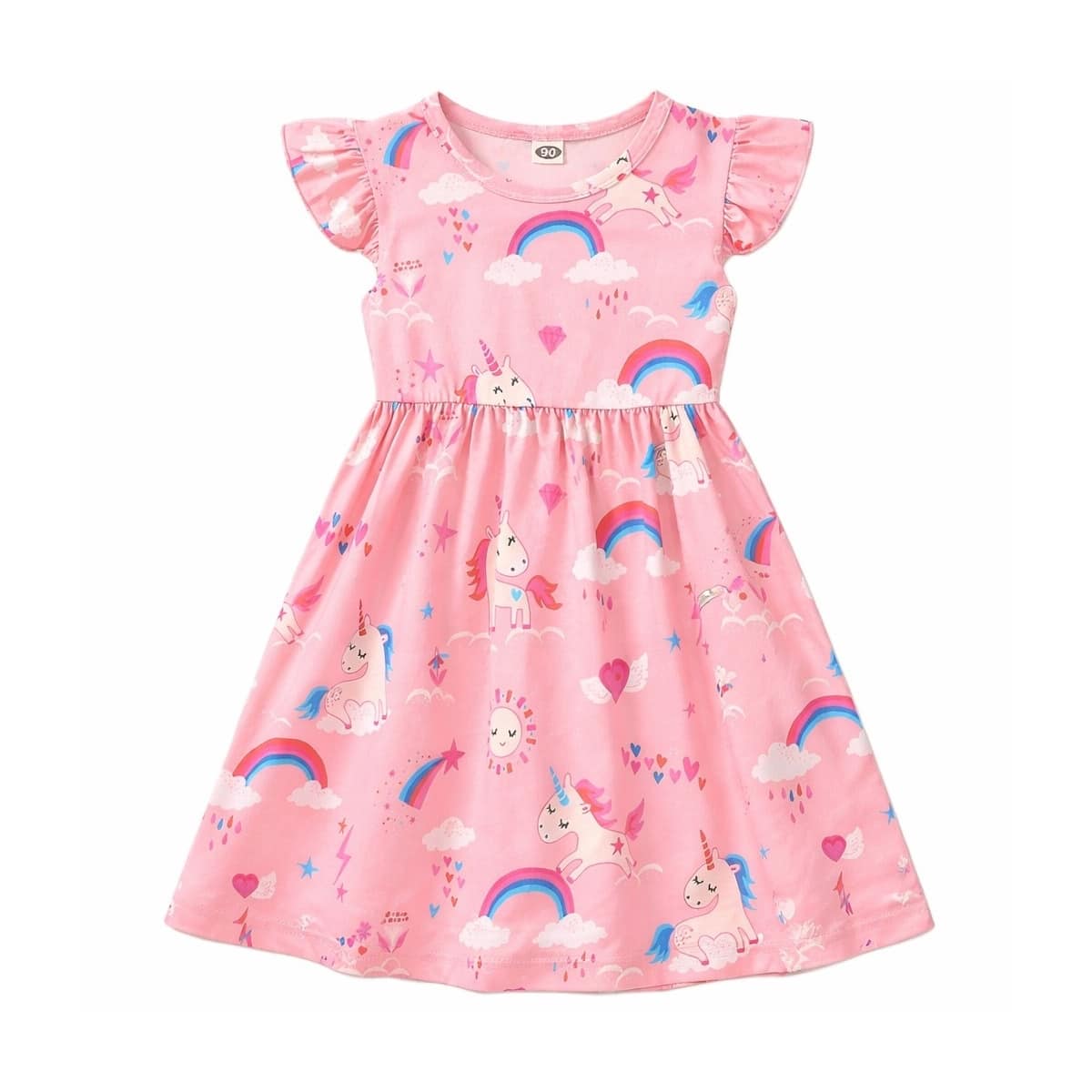 Cette robe motif licorne fille rose va faire craquer toutes les petites fans de magie et de couleurs !