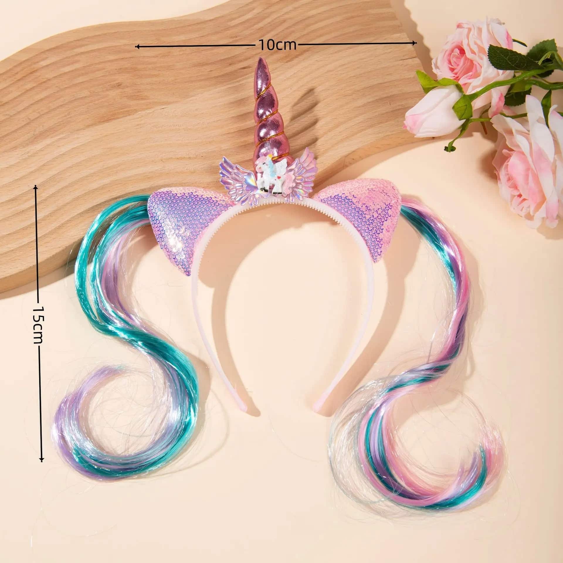 Ce serre tête licorne fille avec extensions est parfait pour un anniversaire, un carnaval, une séance photo ou simplement pour jouer à la maison et se sentir un peu licorne au quotidien.