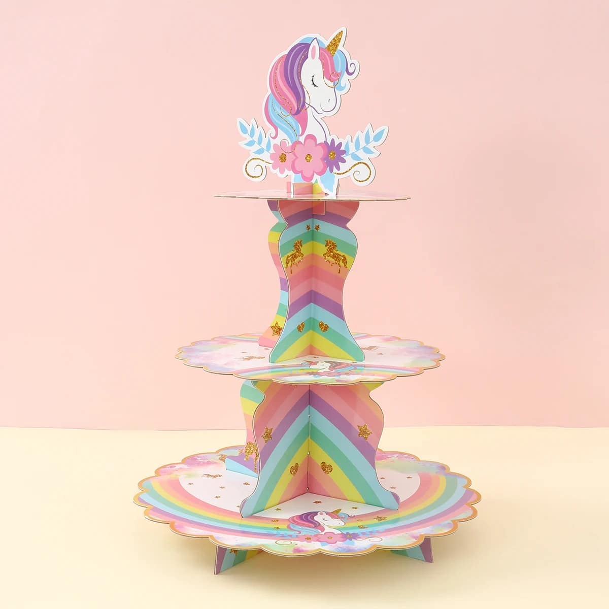 Ce support gateau licorne anniversaire à 3 étages transforme instantanément une table de fête en vrai coin enchanté.