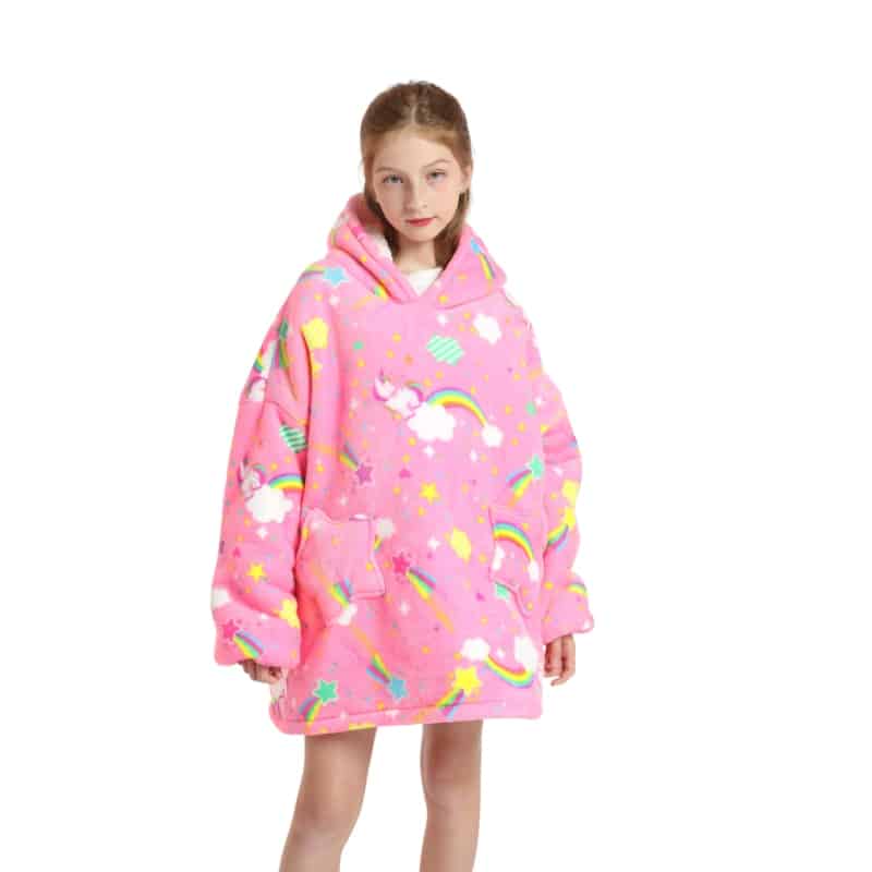 Le sweat plaid enfant licorne rose est fait pour les petits qui veulent rester au chaud sans sacrifier la magie.