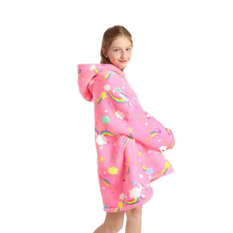 Fabriqué en polyester doux et moelleux, le sweat plaid enfant licorne rose offre une sensation de chaleur immédiate au contact de la peau.