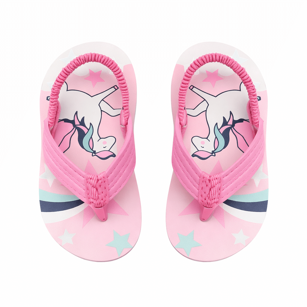 Avec sa tête de licorne bien visible sous le pied et ses étoiles qui parsèment la semelle, la tong fille licorne transforme chaque pas en petit moment de magie.