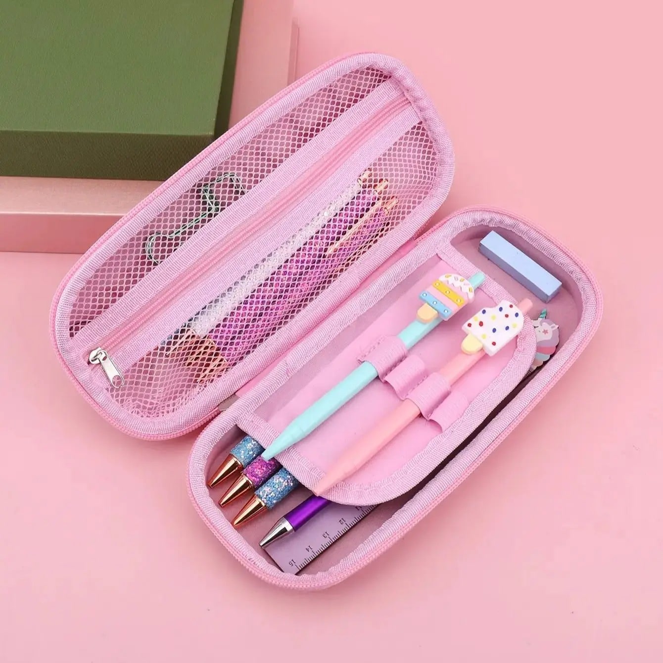 Une trousse rigide et féerique qui protège crayons et stylos dans un écrin rose pastel peuplé de licornes, d’étoiles et de bonbons. La magie de l’univers licorne s’invite partout, même dans le sac d’école.