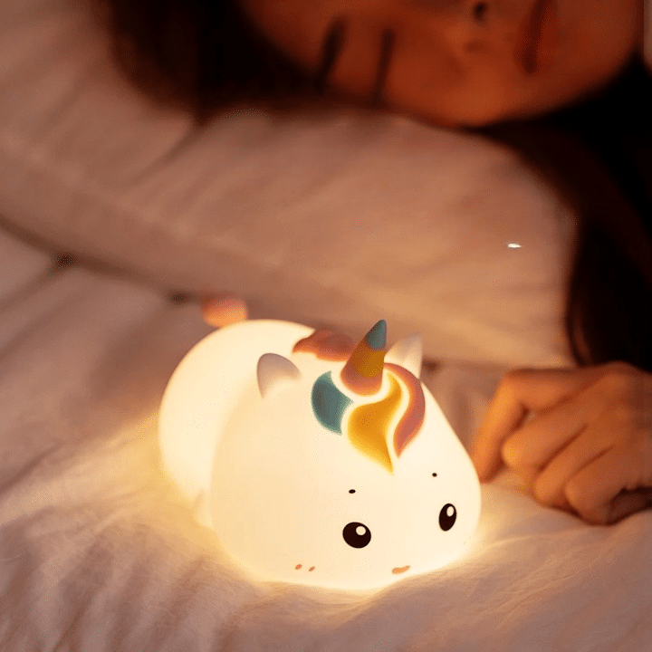 Cette veilleuse enfant en forme de licorne illumine les nuits avec une douce lumière apaisante, parfaite pour rassurer les petits qui ont peur du noir.
