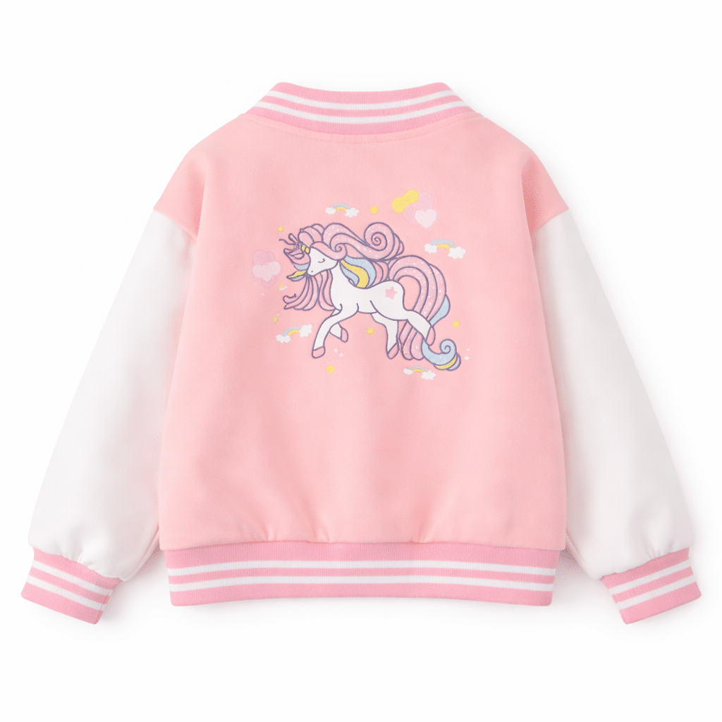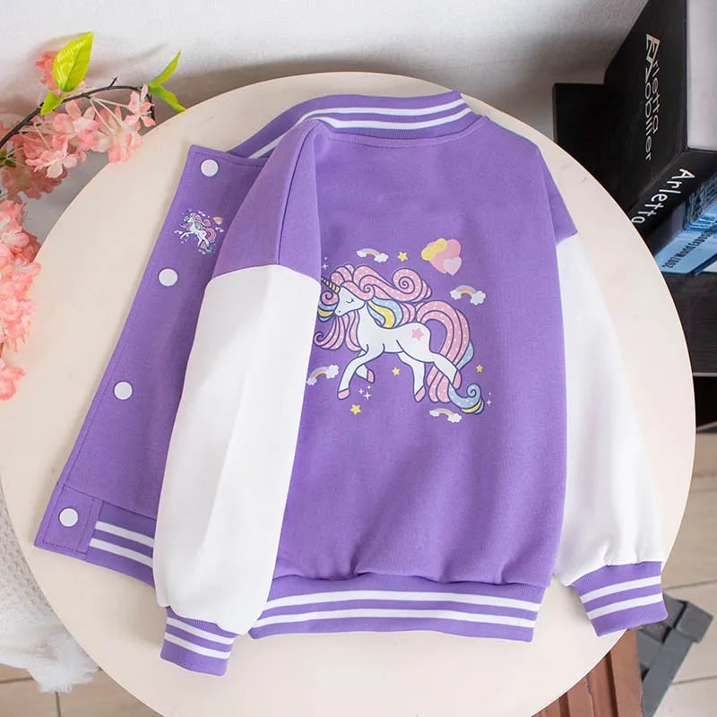 Cette veste baseball enfant licorne va faire craquer toutes les petites fans de magie et de couleurs pastel.